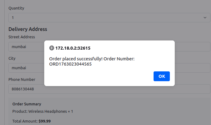 - Backend: Node.js/Express API (2 replicas) handling business logic