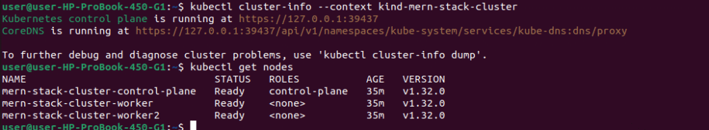 kubectl cluster-info --context kind-mern-stack-cluster