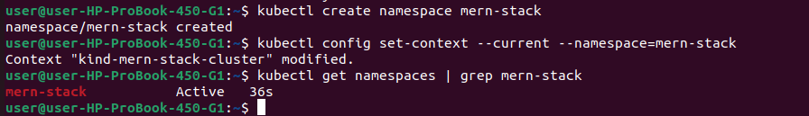 kubectl config set-context --current --namespace=mern-stack