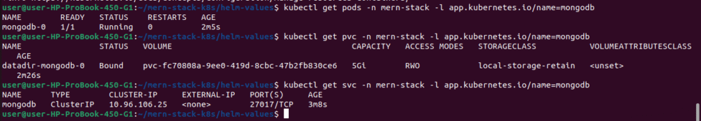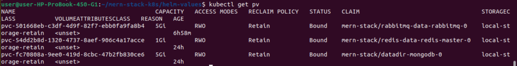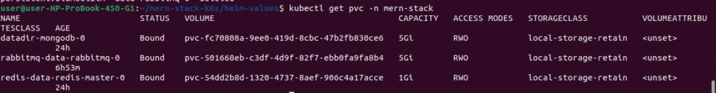 kubectl get pvc -n mern-stack