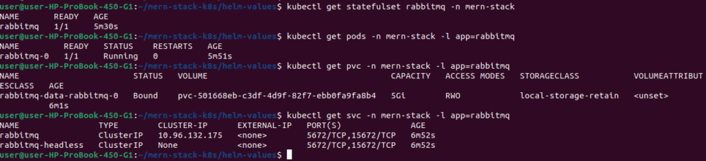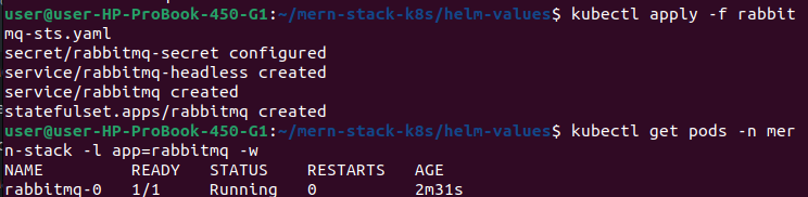 kubectl delete pod rabbitmq-0 -n mern-stack