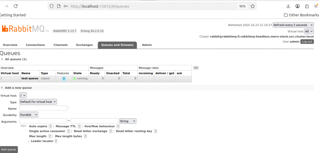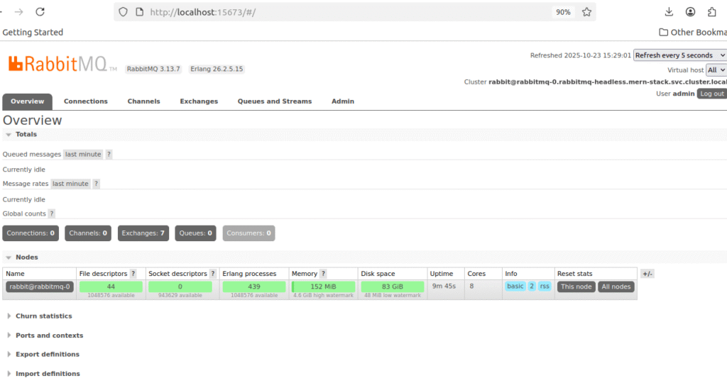 kubectl port-forward -n mern-stack svc/rabbitmq 15672:15672