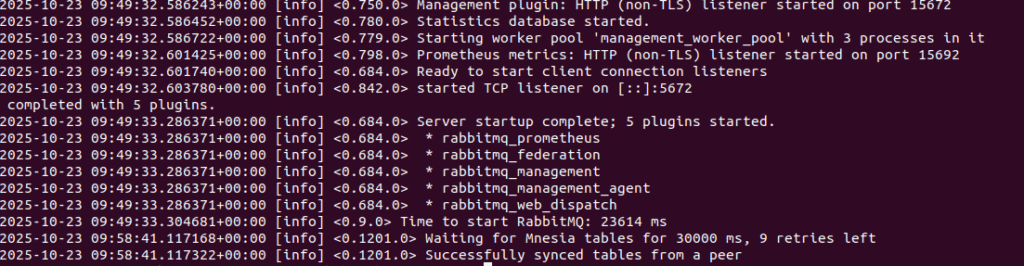 kubectl logs -n mern-stack rabbitmq-0 --tail=50