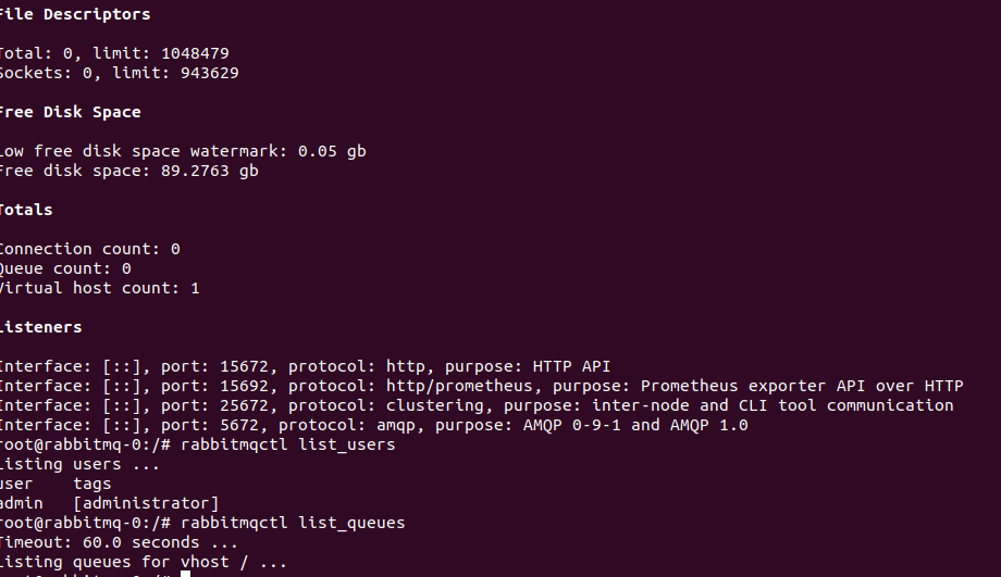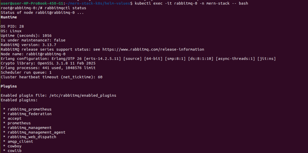 kubectl exec -it rabbitmq-0 -n mern-stack -- rabbitmqctl status